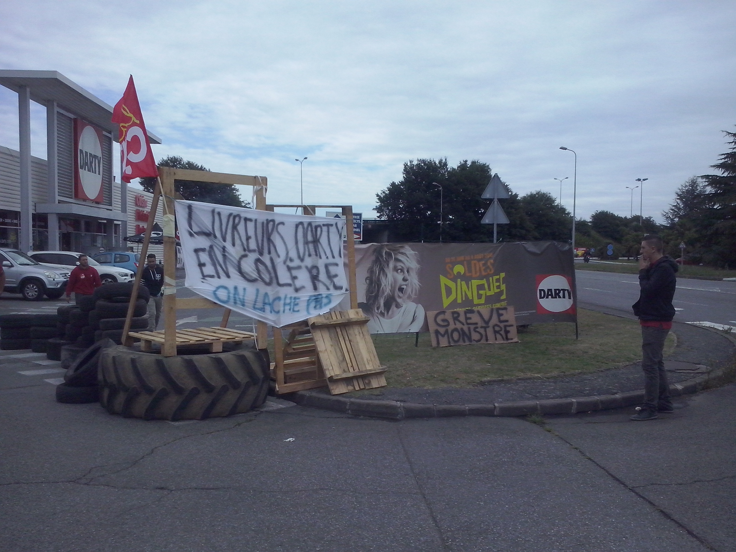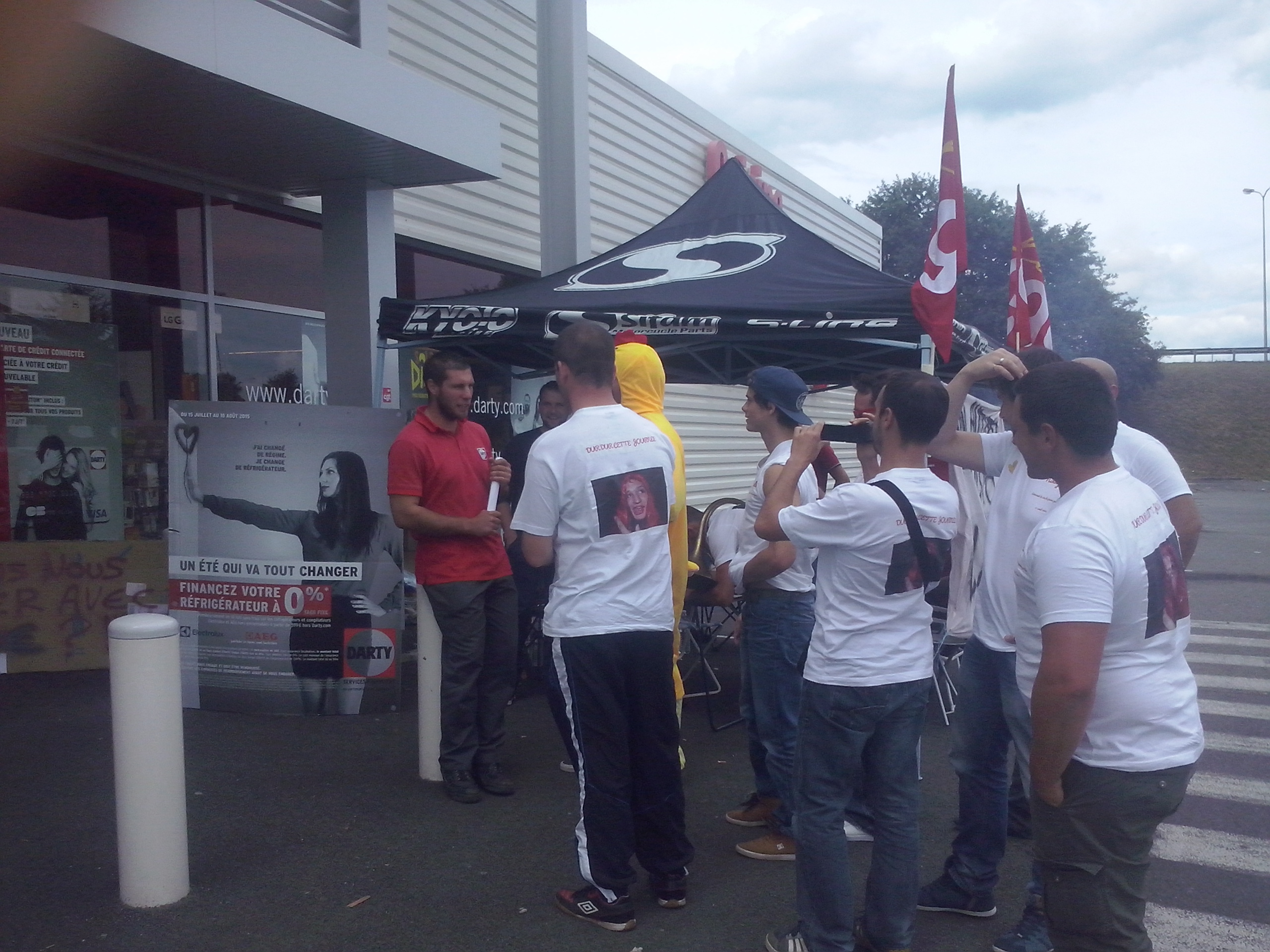 Un mouvement populaire et empreint de solidarité de la part des clients. En ce samedi, 5eme jour de grève,c’est l’heureux constat que font ces valeureux grévistes. Les signatures de soutien sur la pétition ne cessent de grandir, jours après jours( plus de 500 actuellement). Certains n’hésitent pas à leur faire des dons de toutes sortes. Le soutien vient aussi des salariés d’un peu partout. Tous ces signes de solidarité leurs donnent le moral et la force pour continuer. Aujourd’hui, c’est samedi, les grévistes sont bien conscients que la direction ne se manifestera pas. Puis de toutes façons, les brèves apparitions dont elle gratifie les salariés semblent plutôt s’apparenter à des tentatives d’intimidations maladroites ou à essayer de faire évacuer les