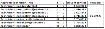 Création de 2 grilles de rémunération pour les techniciens :