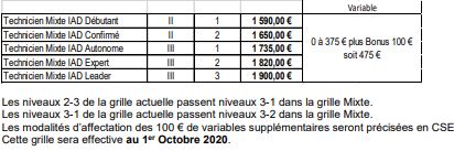 Mise en place, d’une grille pour les techniciens qui ne sont pas mixtes (EGP) et d’une autre grille pour ceux qui le sont . C’est un tournant important pour l’entreprise qui était, jusque là, fervente défenseuse d’une seule grille.